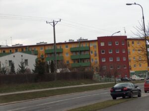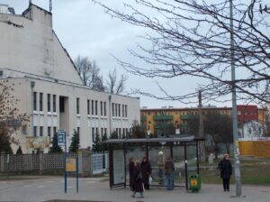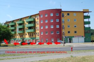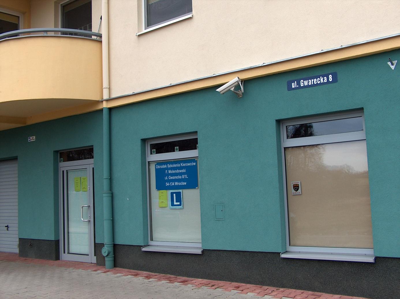 Budynek przy ulicy Gwareckiej, w którym mieści się nauka jazdy na parterze z drugiej strony budynku.